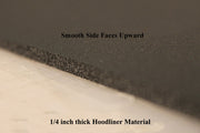 This hoodliner is fabricated from durable black rubber foam to help reduce engine heat and noise. While not OEM fiberglass, once adhered it delivers a factory-style appearance under the hood.