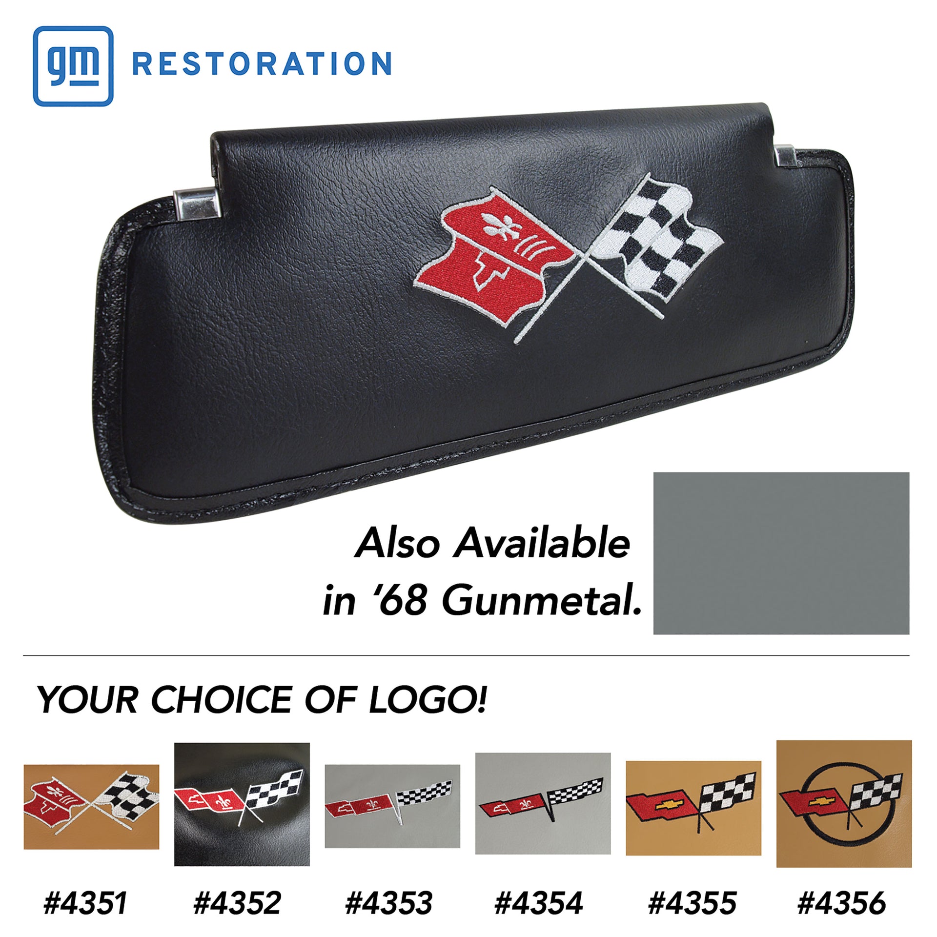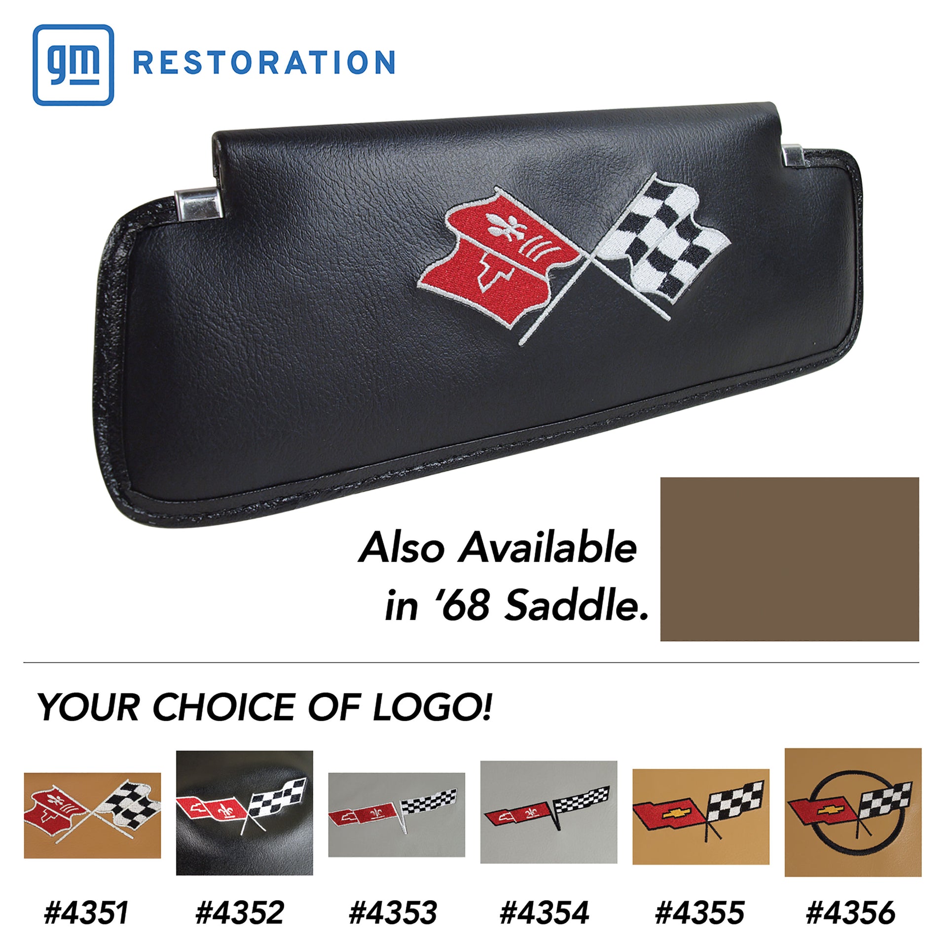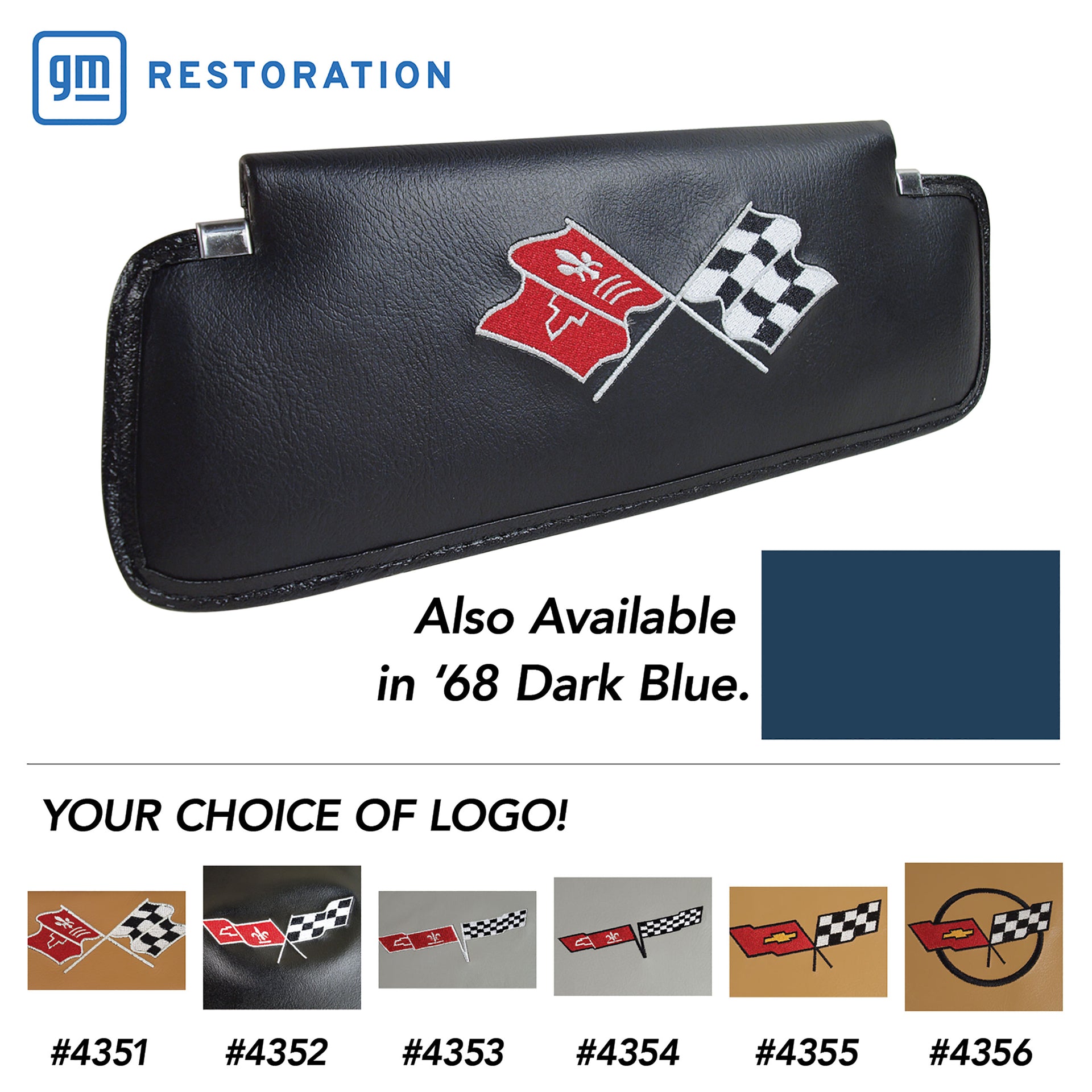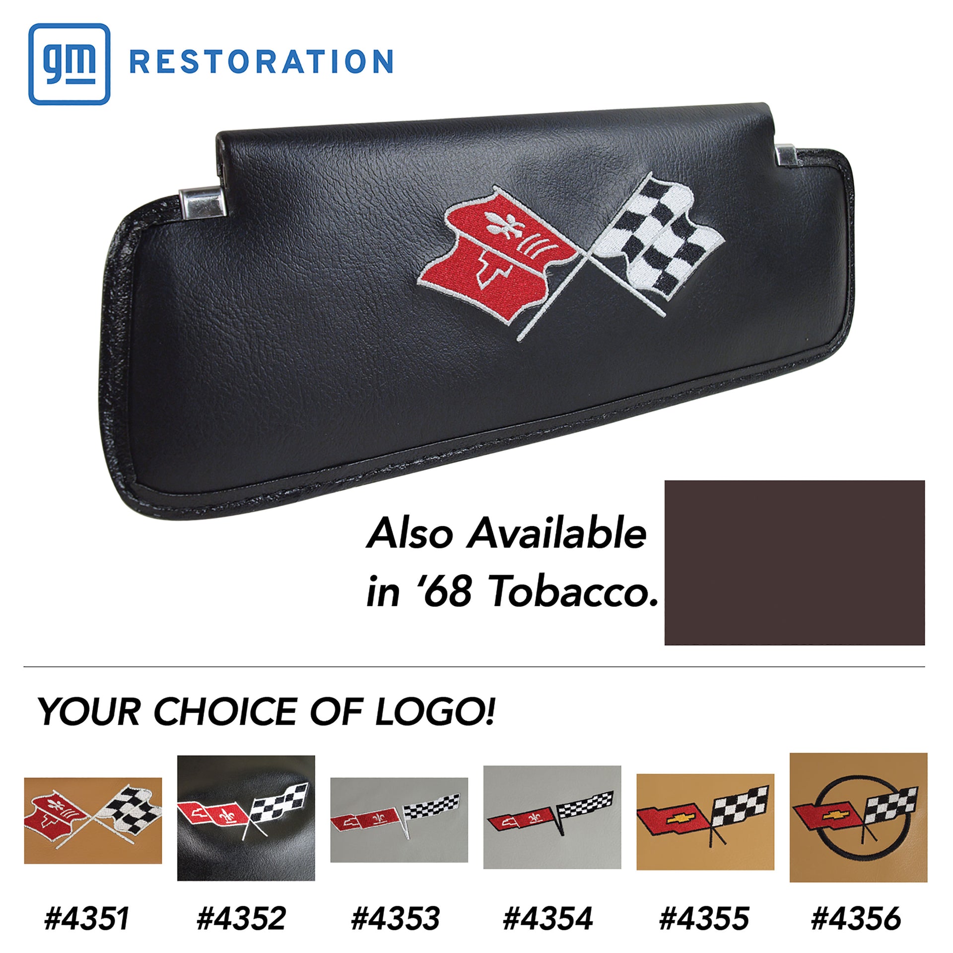 C3 1968 Corvette Sunvisors Black Embroidered W/Logo - CA