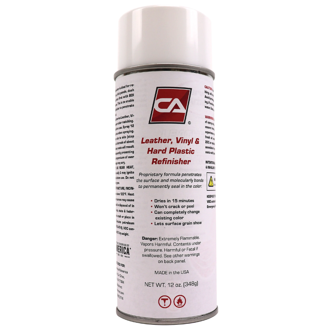 CA’s Interior Dye delivers true OEM color accuracy with solid, consistent coverage. Available in a 12-oz. aerosol spray or quart container, it’s ideal for reconditioning seats, dash components, panels, and trim. Use your vehicle’s interior color code to complete the part number for a perfect match.
