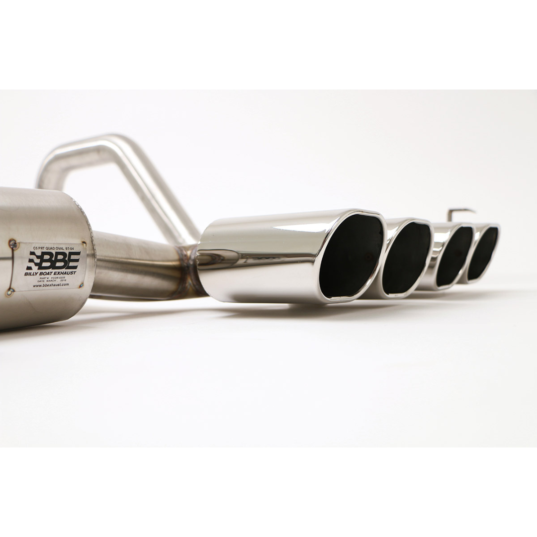 This C5 Corvette PRT Axle Back Exhaust System from Billy Boat Exhaust allows you to have a mellow sound at cruising speeds and a sport note when you're tearing up the streets, all with no annoying drone.