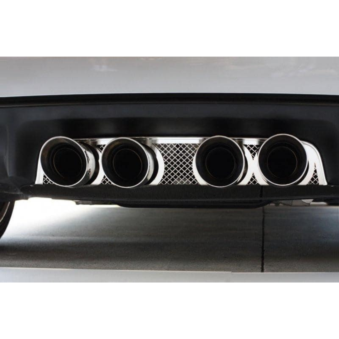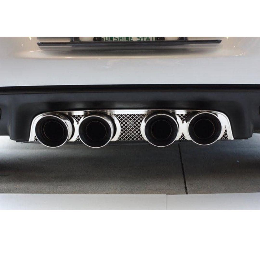 C6 Corvette Exhaust Filler Panel Laser Mesh Polished Stainless Steel - B&B Route 66 Quad 4.0 Round Tips