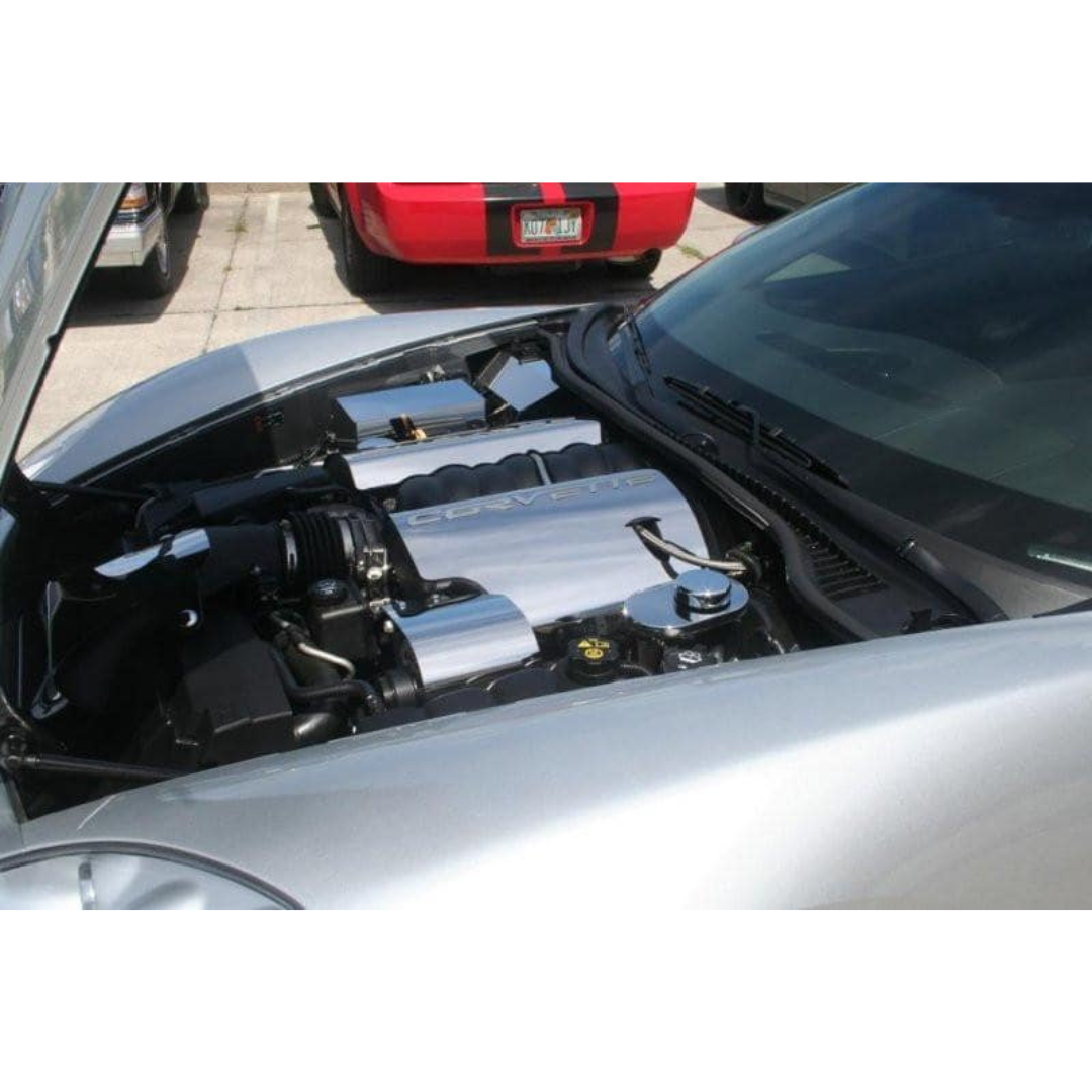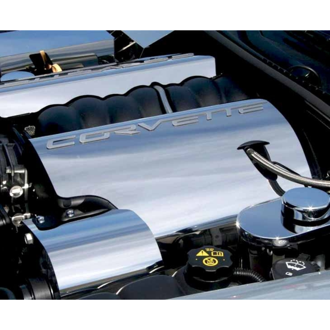 C6 Corvette Fuel Rail Covers w/ Corvette Script - Polished Stainless Steel