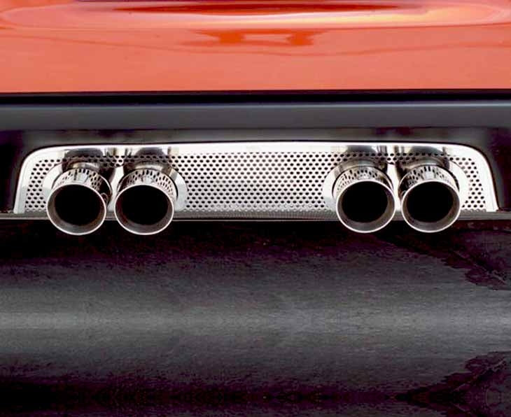 C6 Corvette Perforated Exhaust Filler Panel Polished Stainless Steel - Borla Sport Quad Oval Tips