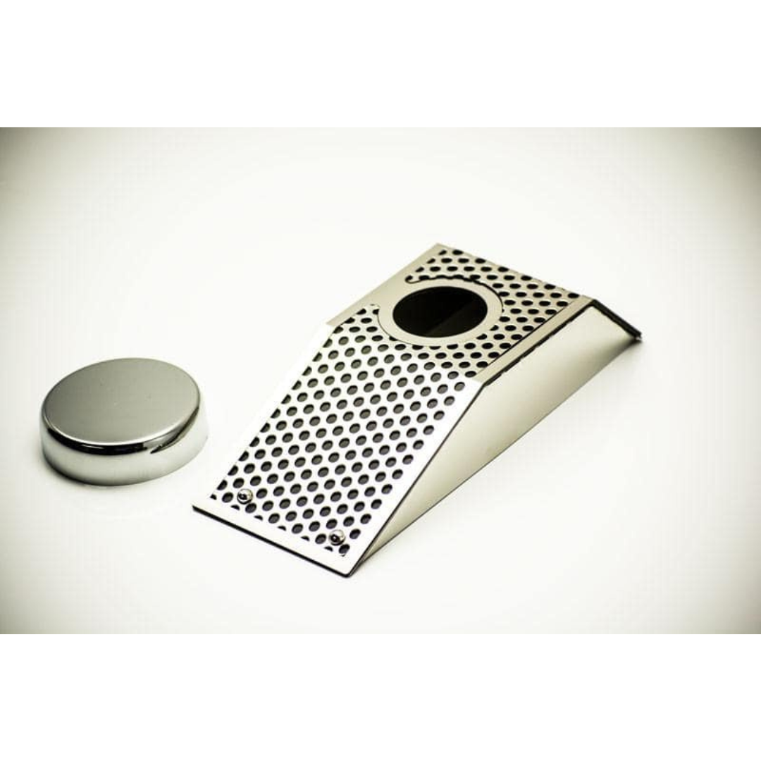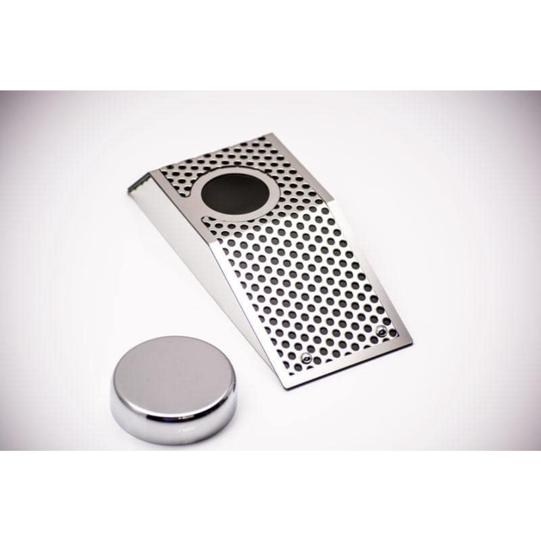 Give your car a performance look with our Perforated Power Steering Reservoir Cover with chrome cap for your C6 Corvette. This engine trim masterpiece is laser forged and hand-finished right here in the USA from premium stainless steel polished to a mirror finish with a perforated stainless steel top. Also included with this accessory is a chrome factory cap cover.