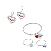 C6 Corvette Sterling Silver Heart Earrings & Bangle Charm Bracelet Bundle