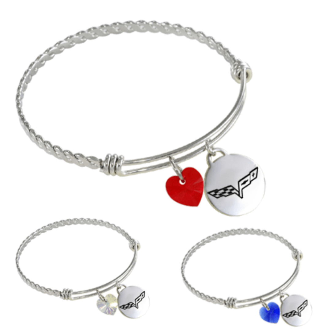 - Features the C6 Corvette logo with a choice of red, clear, or blue crystal heart charm.