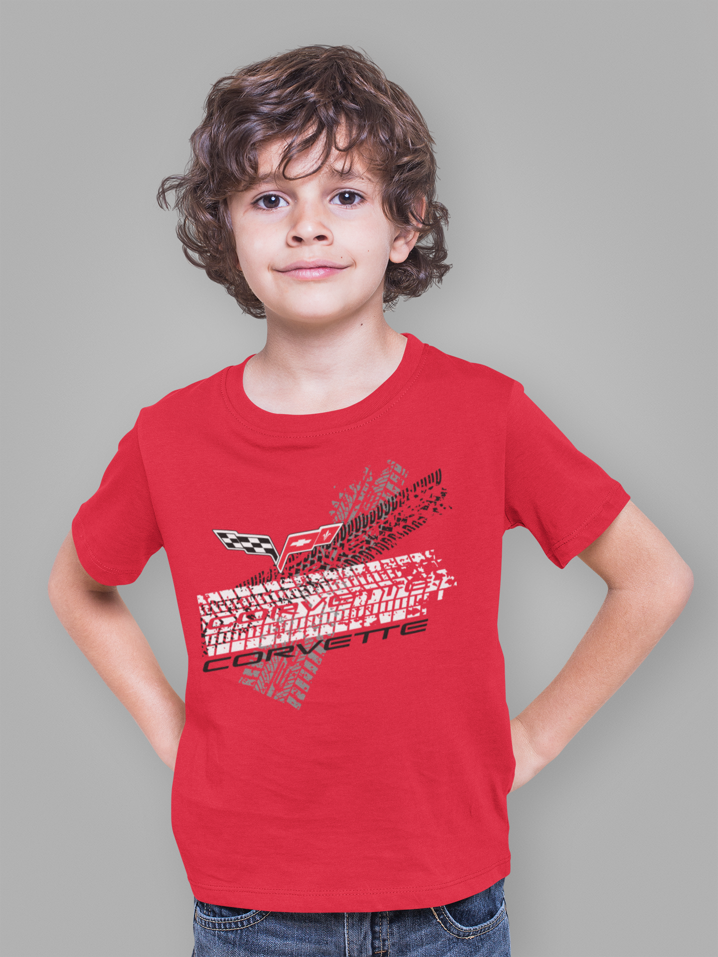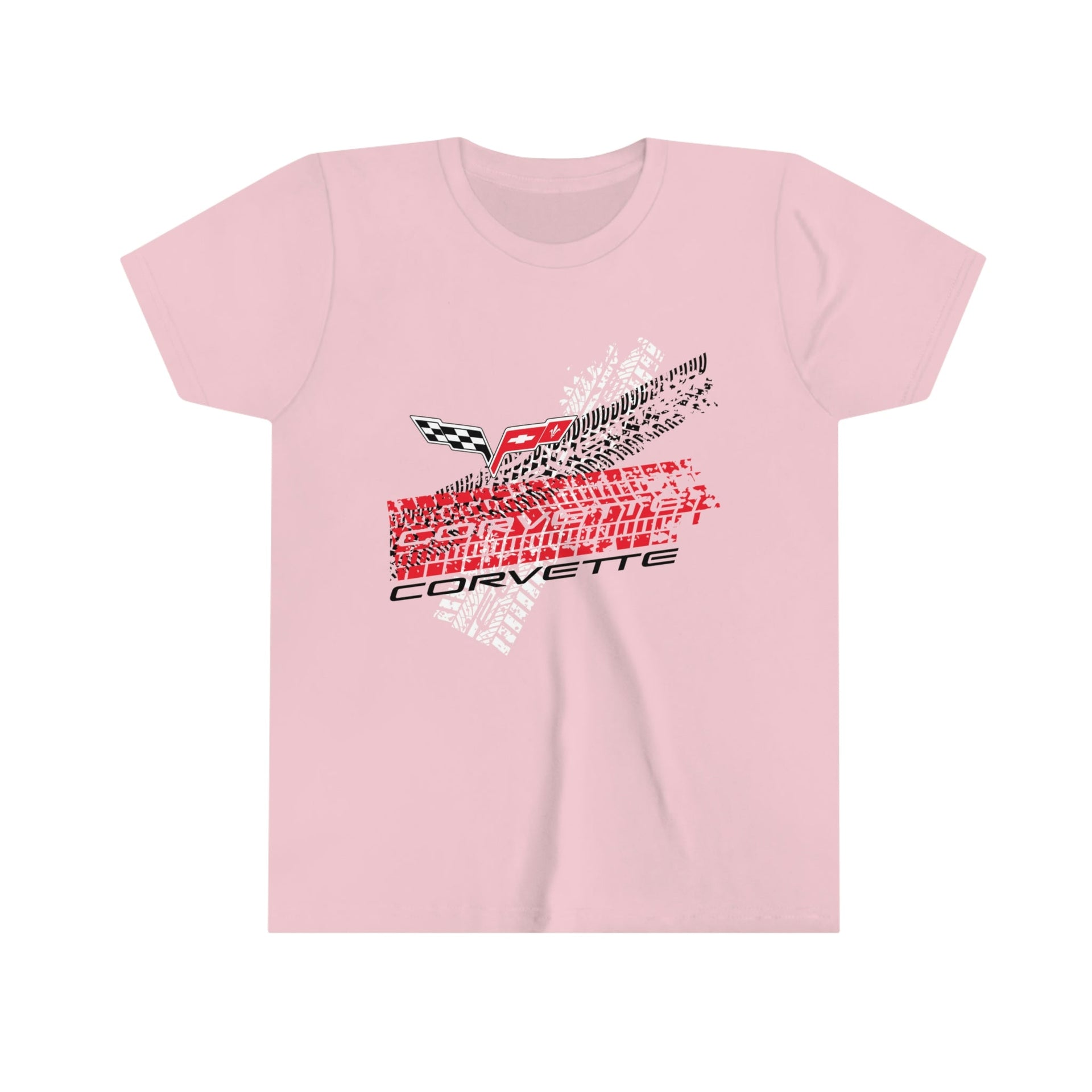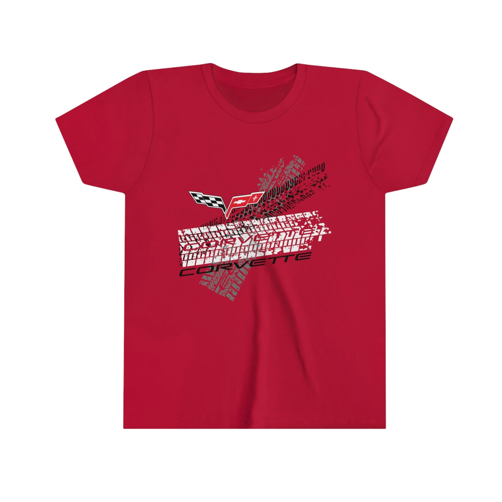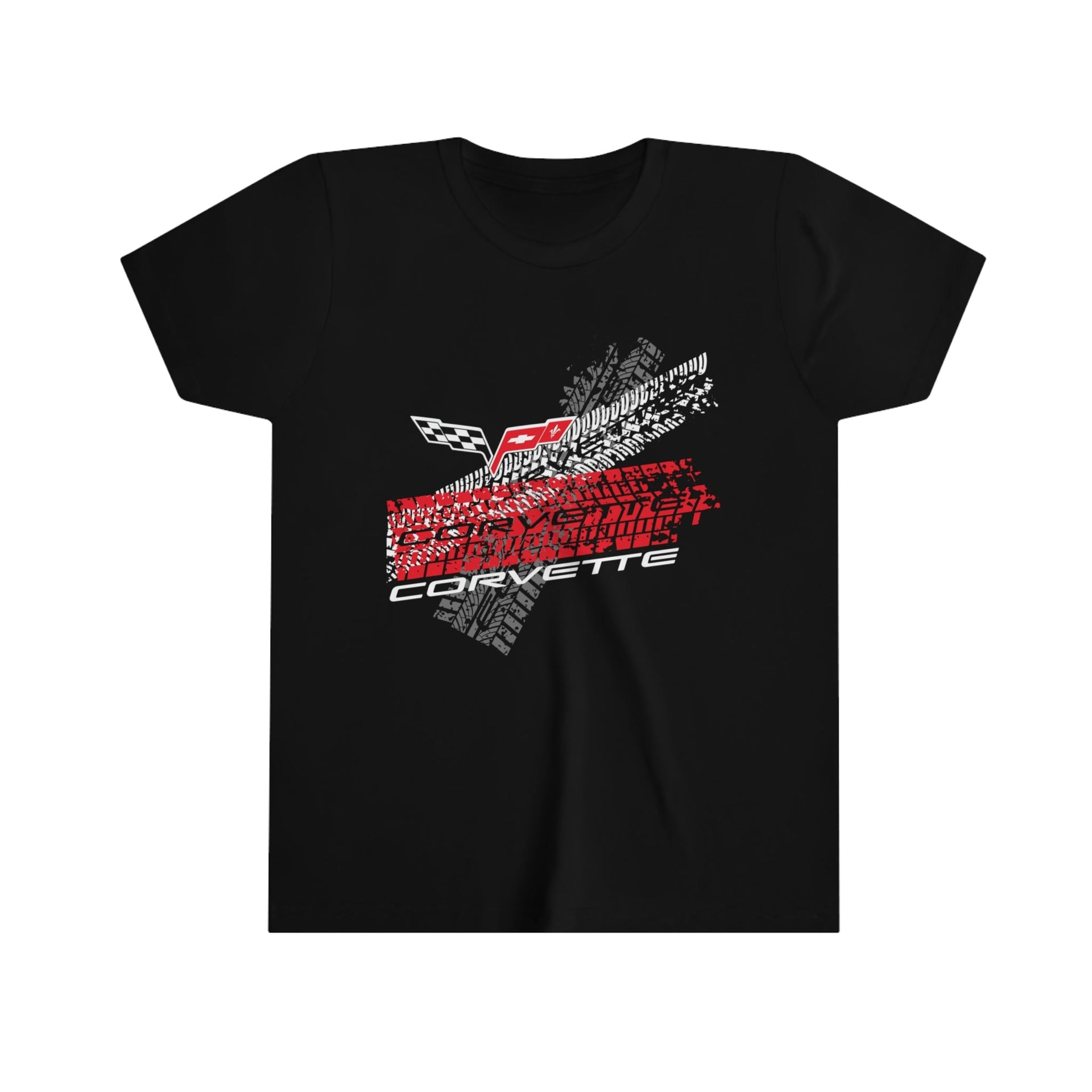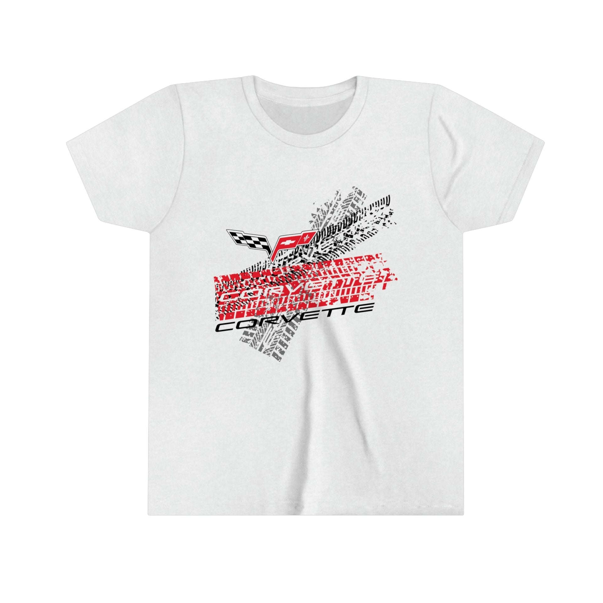 C6 Corvette Tire Tracks Youth Short Sleeve 100% Cotton Tee
