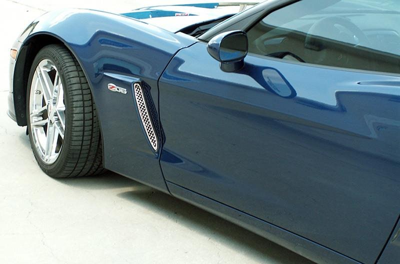 C6 Corvette Z06 Side Vent Grilles - 2Pc Laser Mesh Polished Stainless Steel