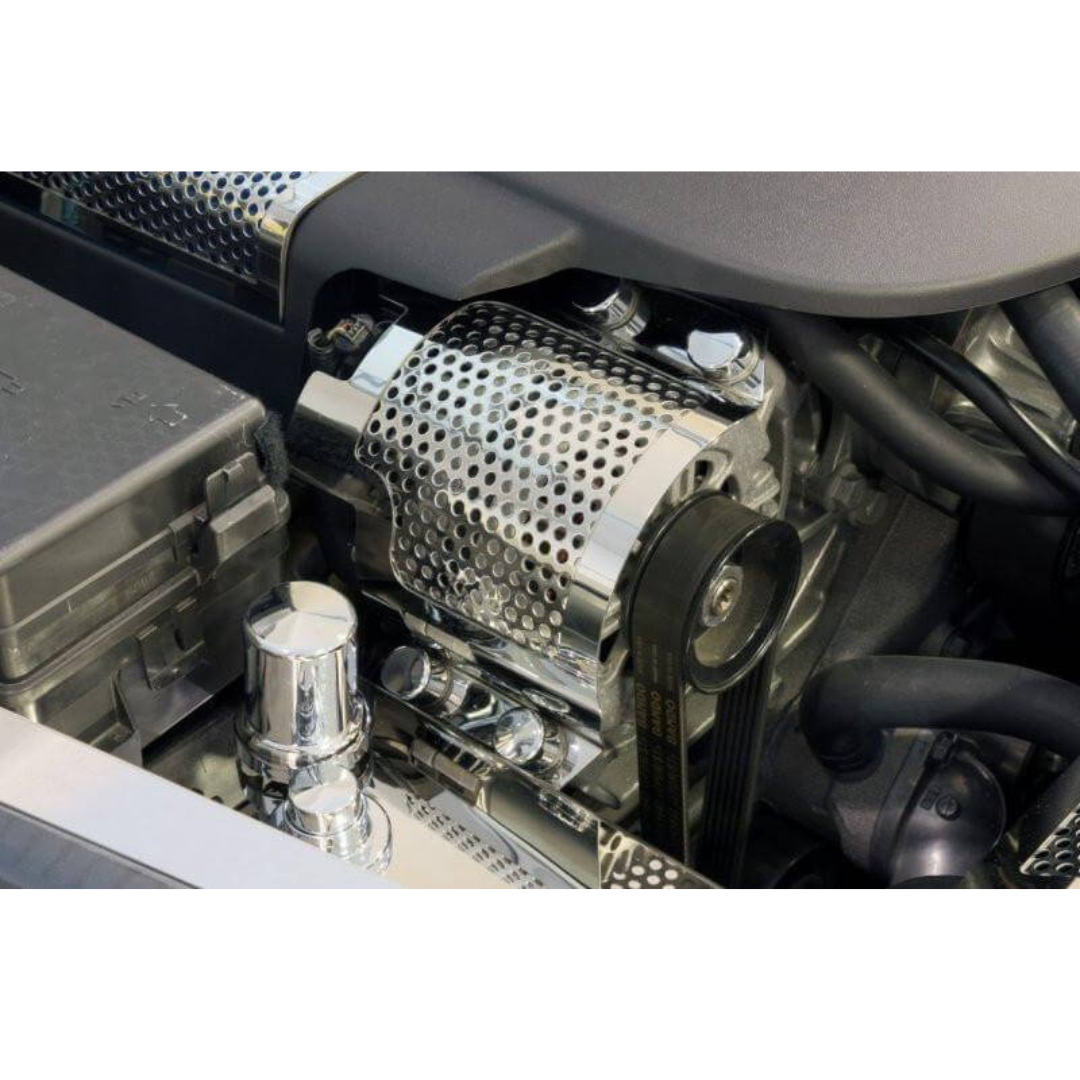 C6 Corvette ZR1 Alternator Cover - Polished Perforated Stainless Steel