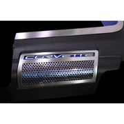 These are truly custom accessories made of the finest T304 hand polished perforated stainless steel. Our C6 Corvette ZR1 (2) Piece Perforated Factory Side Shroud Covers feature a window that allows your Factory Corvette Logo to show through. These Corvette accessories are designed to peel and stick to the factory engine shroud in minutes.