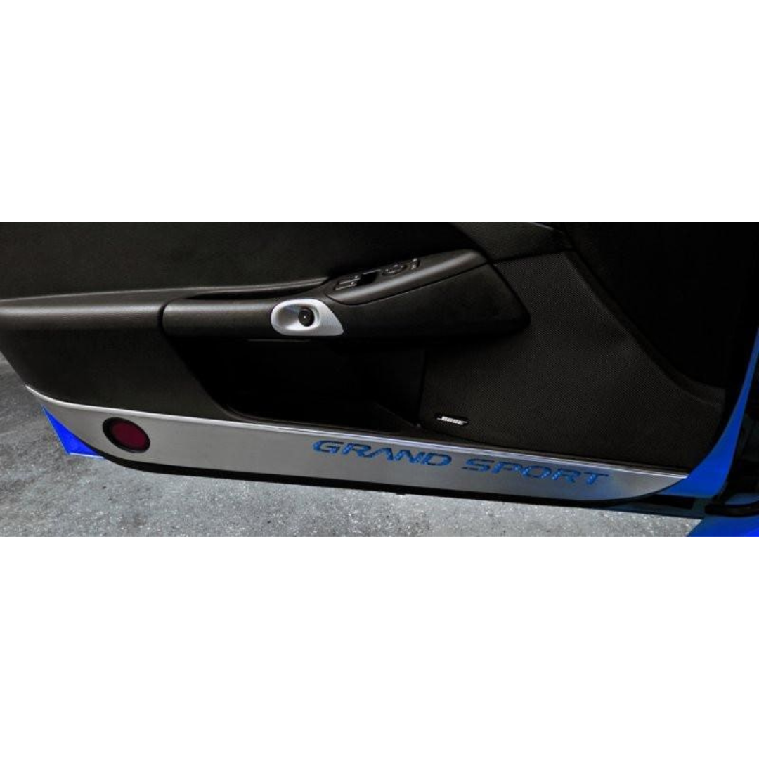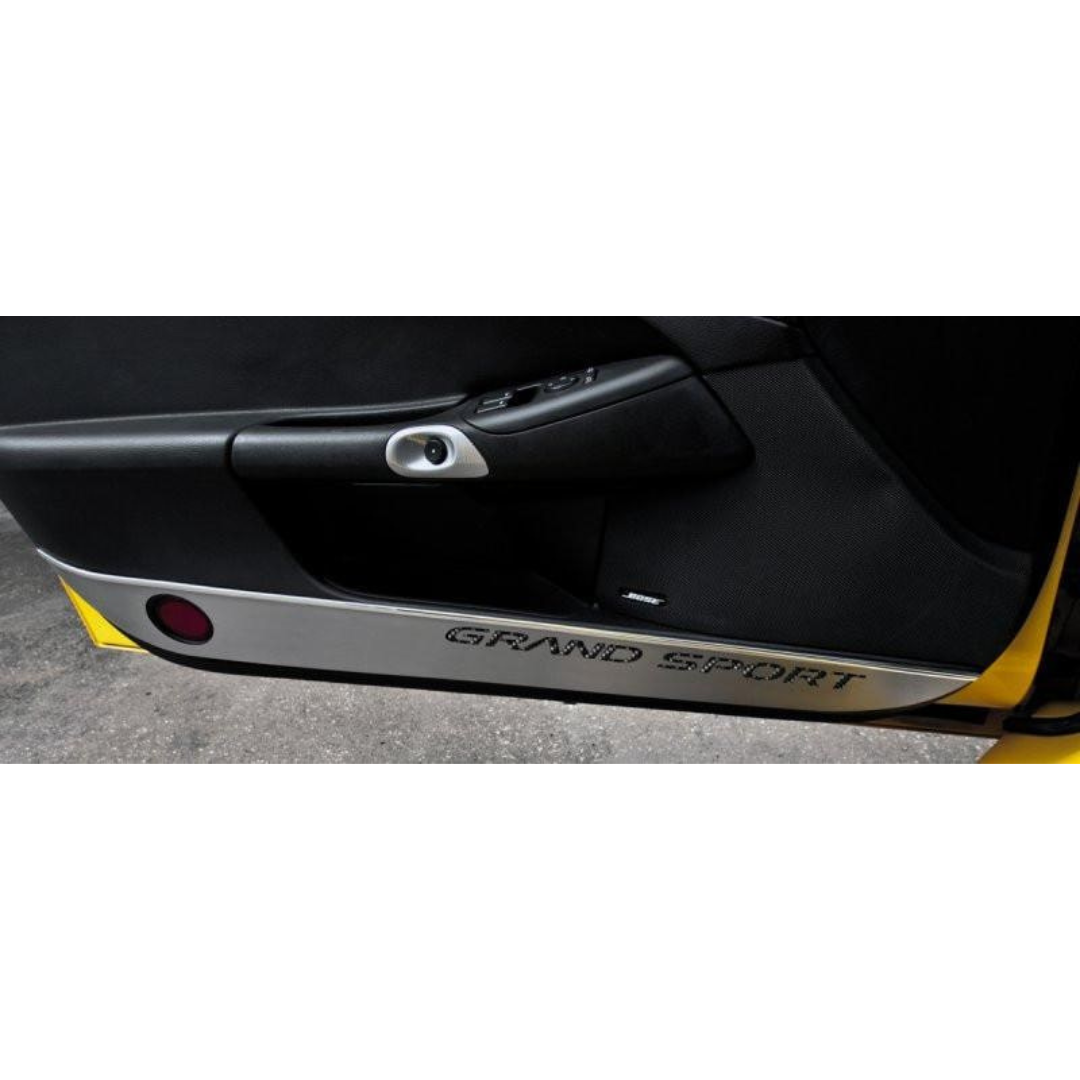 C6 Grand Sport Corvette Door Guards - Brushed Stainless Steel w/ Carbon Fiber Inlay | 2 pc