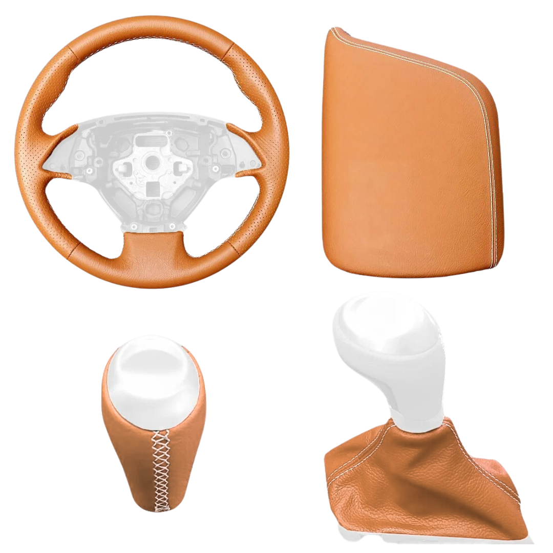- Steering Wheel Cover: Unlike competing products, this cover reupholsters both the rim and spokes, providing a complete and cohesive look that enhances the feel and grip.