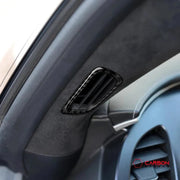 This carbon fiber interior A-Pillar Vents Trim overlay is made using real carbon fiber, topped with soft and flexible epoxy with a glossy finish.