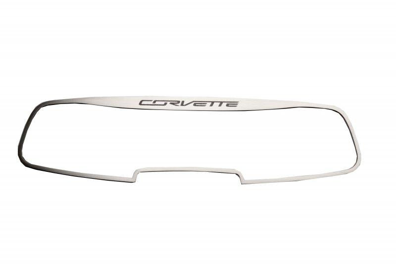 Dress up your C7 Corvette with our brushed stainless steel Rear View Mirror Trim with Etched CORVETTE Lettering. This Corvette accessory is designed to fit within the outer frame of the auto-dim rearview mirror, making your Corvette a little more unique than all the rest.