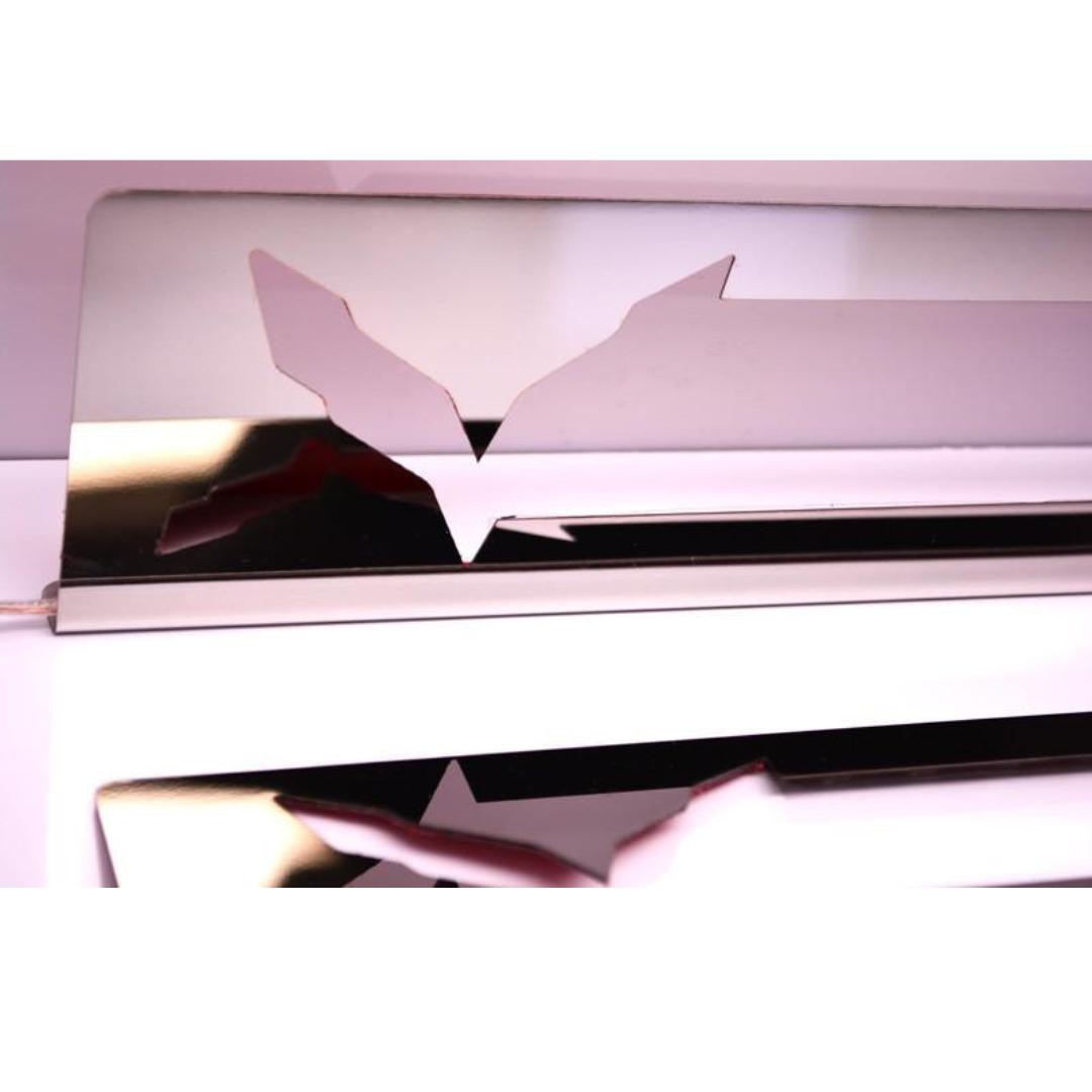 Customize your Corvette Stingray with our LED illuminated door sill overlays made from polished stainless steel. These overlays fit over your factory door sills to give your Corvette a clean custom look that's uniquely your own. Get a leg up at the car shows by ordering today.