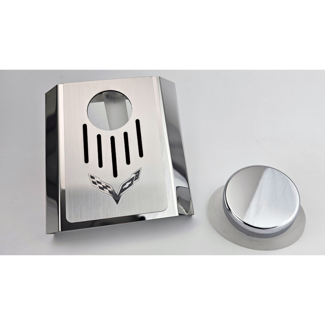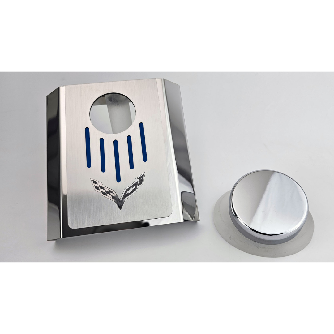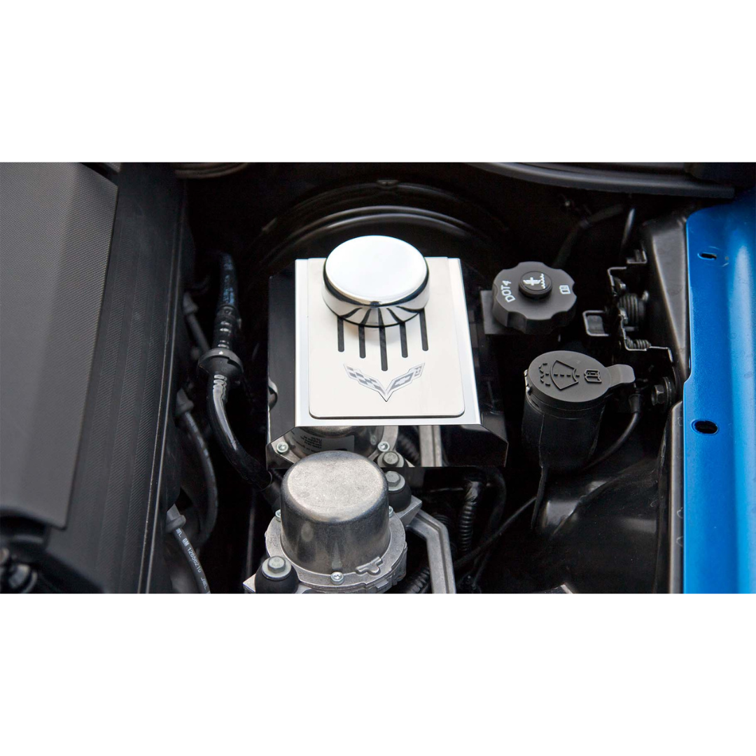 C7 Corvette Master Cylinder Cover - Stainless Steel with Corvette Logo (Manual Transmission)