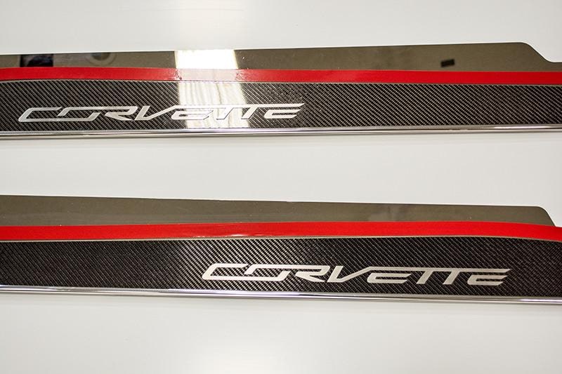 C7 Corvette Side Skirts - Stainless Steel w/ Real Carbon Fiber Inlay - Corvette Script
