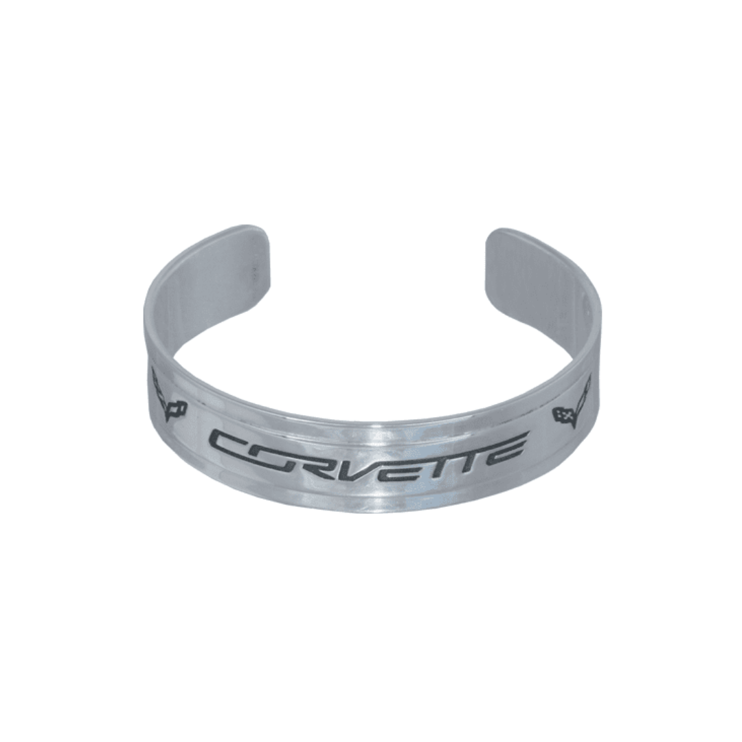 Sport some serious Corvette style with this unisex cuff made of high-quality sterling silver. The 9/16″ width makes a bold statement, just like the legendary C7 model. It showcases the C7 Corvette signature and emblems. Perfect for gearheads and fashionistas alike.
