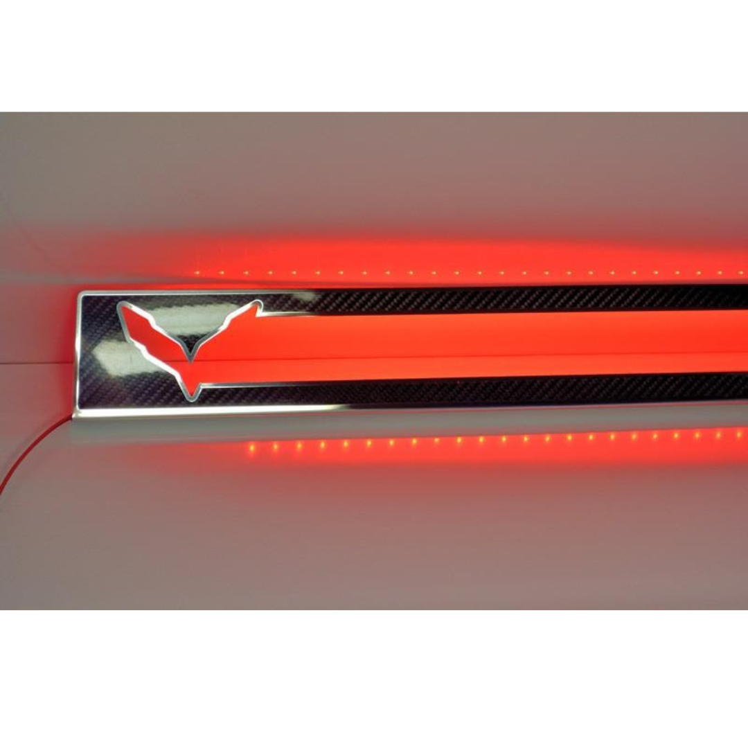 C7 Corvette Stingray LED Illuminated Carbon Fiber Door Sill Overlay 2Pc Stainless Steel Trim