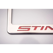 Made with brushed stainless steel this high-quality handcrafted frame features your choice of colored vinyl "STINGRAY" lettering.