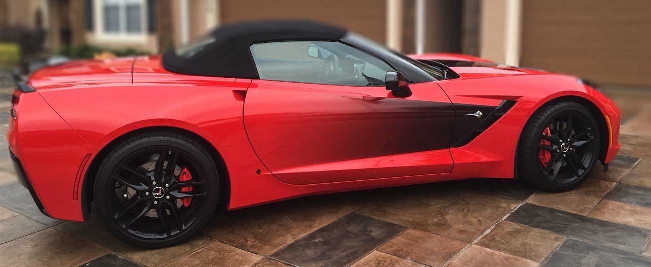 Give your C7 the look of a custom airbrushed paint job at a fraction of the cost with our new Corvette Stingray Decal Side Sport Fade! The graphic has been digitally printed and laminated on clear print media. Using the finest vehicle wrap technologies this graphic will use your vehicles paint color to provide the background coloring! Simply wash and wax with the rest of your car for years of enjoyment.