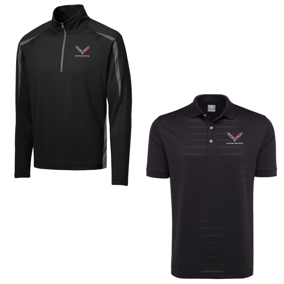 C7 Men's Corvette Stretch Half Zip Pullover & Callaway Opti-Vent Golf Polo Shirt Bundle - Black