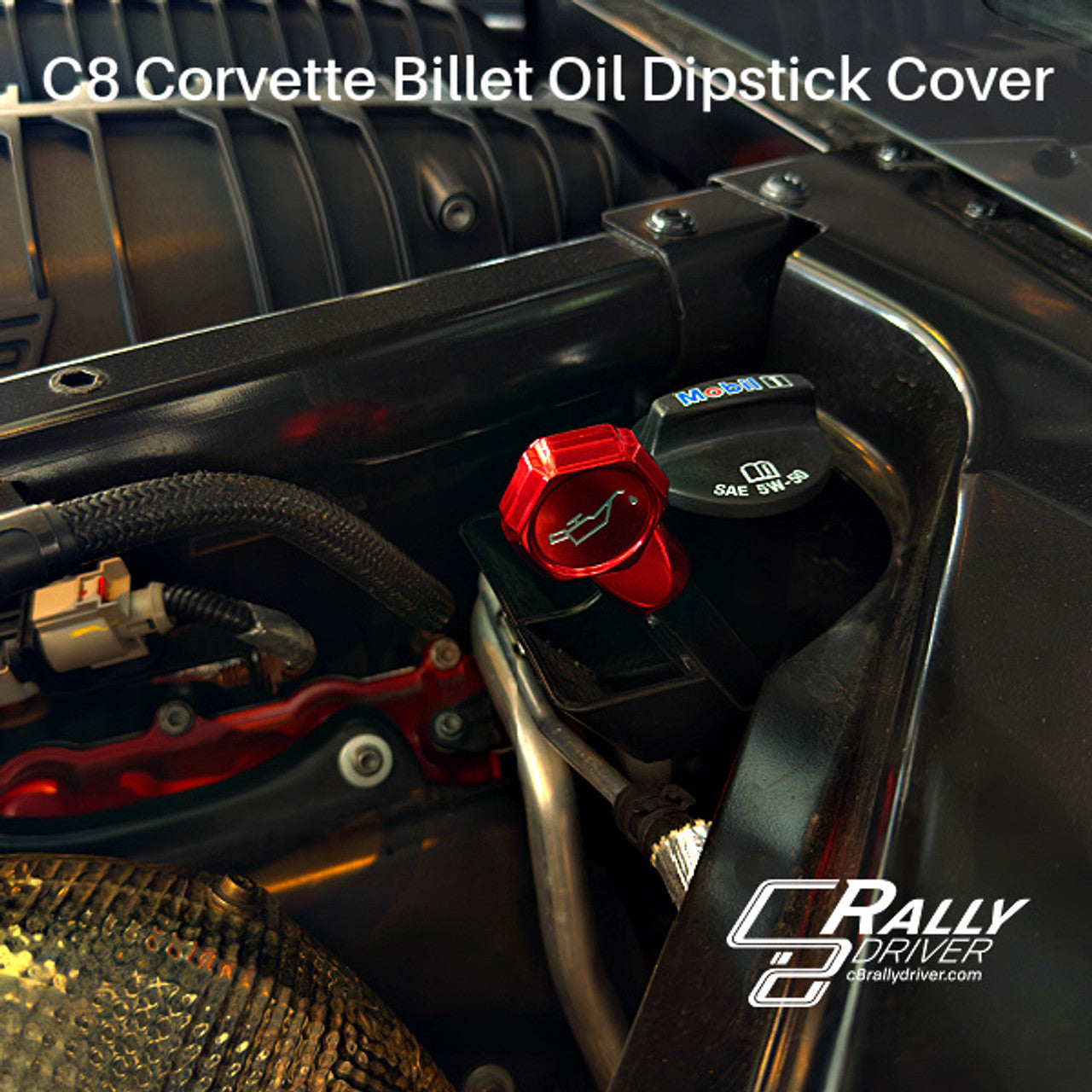 The C8RallyDriver C8 Corvette Billet Oil Dipstick Cover for the 2020+ C8 Corvette fits the Stingray, Z06, ERay and ZR1. It is machined from 6061 billet aluminum. The C8 Corvette Billet Oil Dipstick Cover was designed in-house by C8RallyDriver Designs to compliment the Corvette C8 styling and C8Rally Driver billet accessories. It also looks right at home paired with Paragon Oil and Coolant Billet Caps available on C8RallyDriver.com