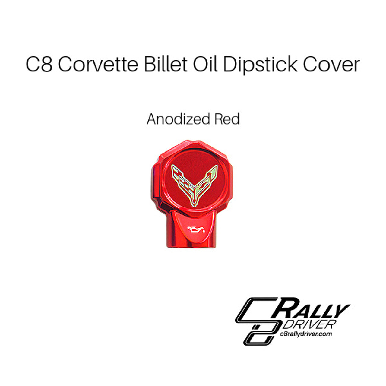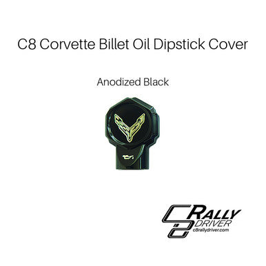 The C8RallyDriver C8 Corvette Flags Billet Oil Dipstick Cover for the 2020+ C8 Corvette fits the Stingray, Z06, ERay and ZR1. The cover is machined from 6061 billet aluminum and the Corvette Flags are engraved on the face along with a small oil can logo. GM Trademarks used under license to C8RallyDriver. C8 Corvette Billet Oil Dipstick Cover was designed in-house by C8RallyDriver Designs to compliment the Corvette C8 styling and C8Rally Driver billet accessories. It also looks right at home paired with Corvette Flags Oil and Coolant Billet Caps available on C8RallyDriver.com