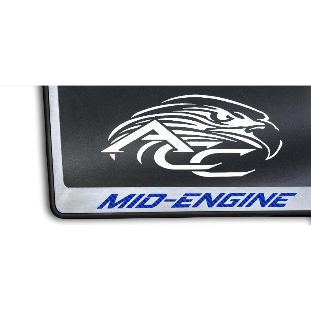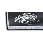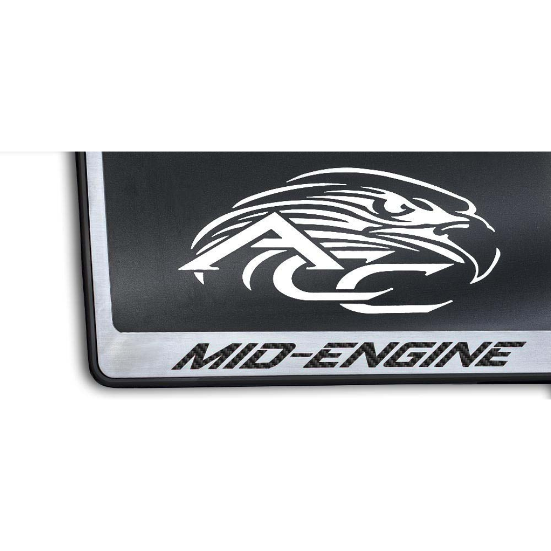 C8 Corvette MID-ENGINE License Plate Frame Black Base - Brushed Stainless Steel