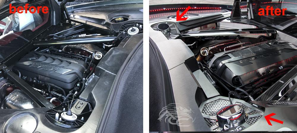C8 Corvette - Perforated Shock Tower Cover Inserts with Chrome Cap - 2 Pieces