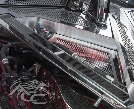 C8 Corvette - Rear Crossmember Covers w/Carbon Fiber Top Plate 2Pc Stainless Steel