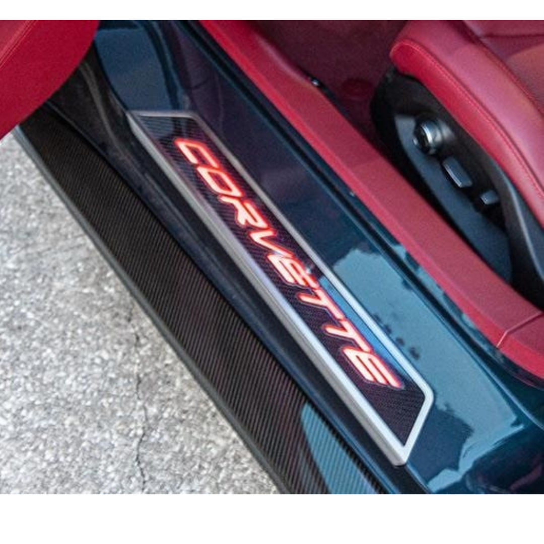 C8 Corvette Stainless Steel Replacement Door Sills - Illuminated