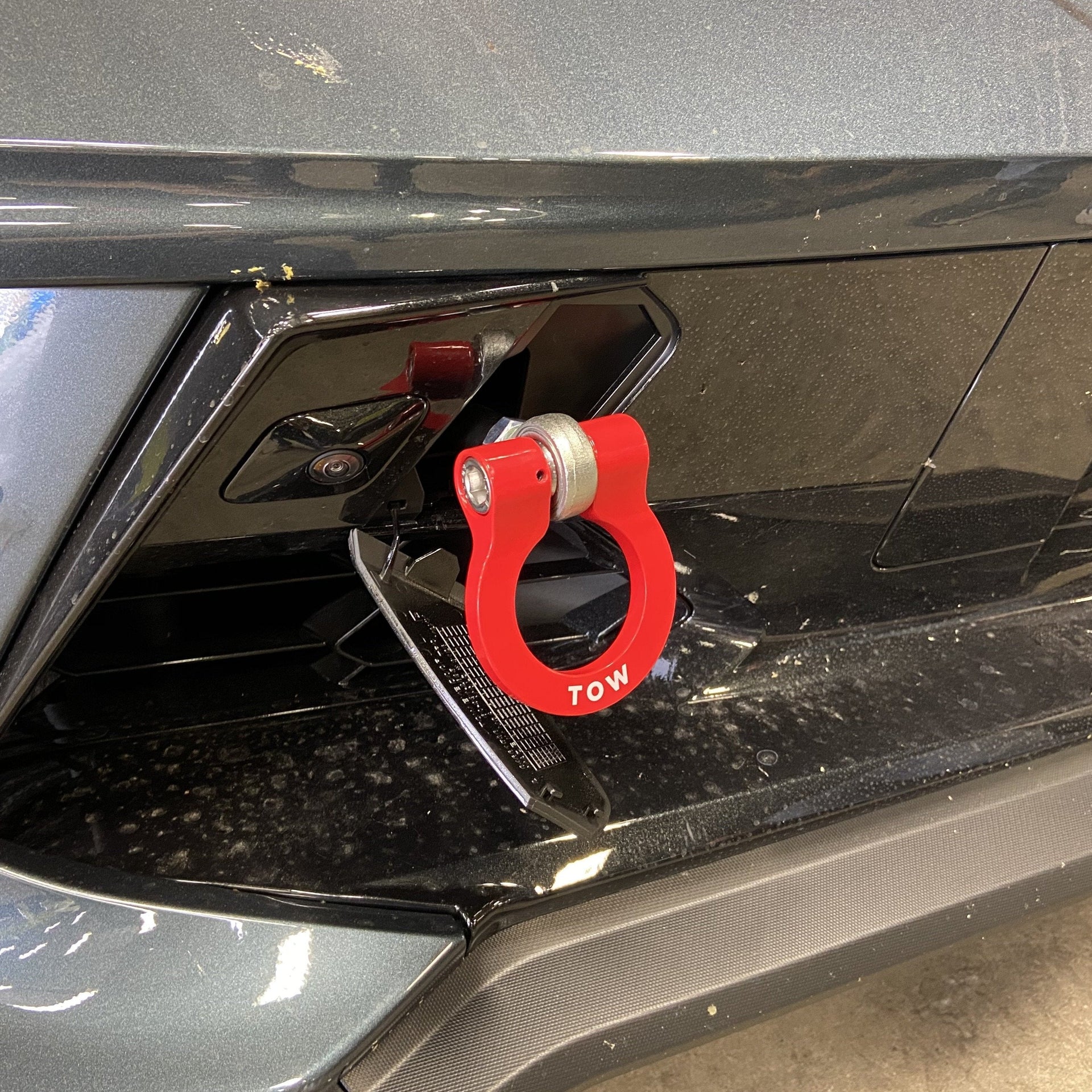 Our C7 & C8 Corvette Premium tow hooks combine form and function and are available with a forged D-ring powder coated in either red or black. We also offer an unpainted option so you can have it powder coated to match your ride. While this product fits both front and rear, if you want to use for front only select the 'long turned down shaft' option.