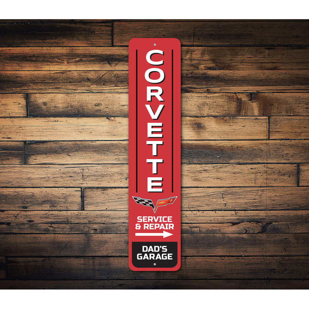C6 Corvette Dad's Garage Service & Repair - Aluminum Sign