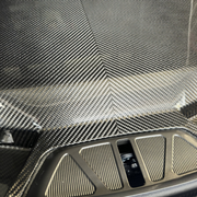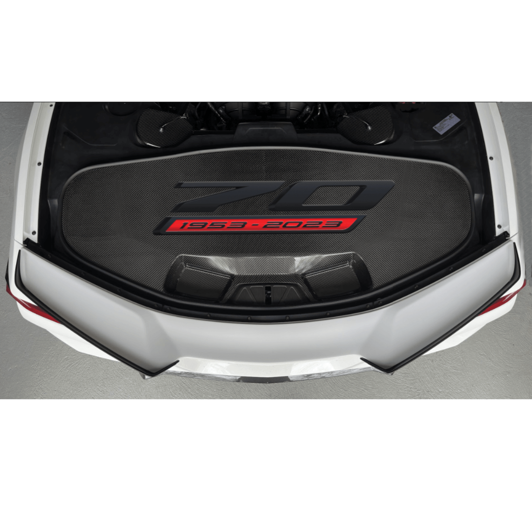 The Carbon Fiber Trunk Cover can remain on the trunk with the rear hatch closed! This cover will also prevent overspray from staining or soaking your carpet if you wash your engine bay, but it will not replace the water proof sealed barrier of the original Corvette C8 Trunk Cover we designed in 2021. The Carbon Fiber Trunk Cover will take your engine bay displays to the next level!
