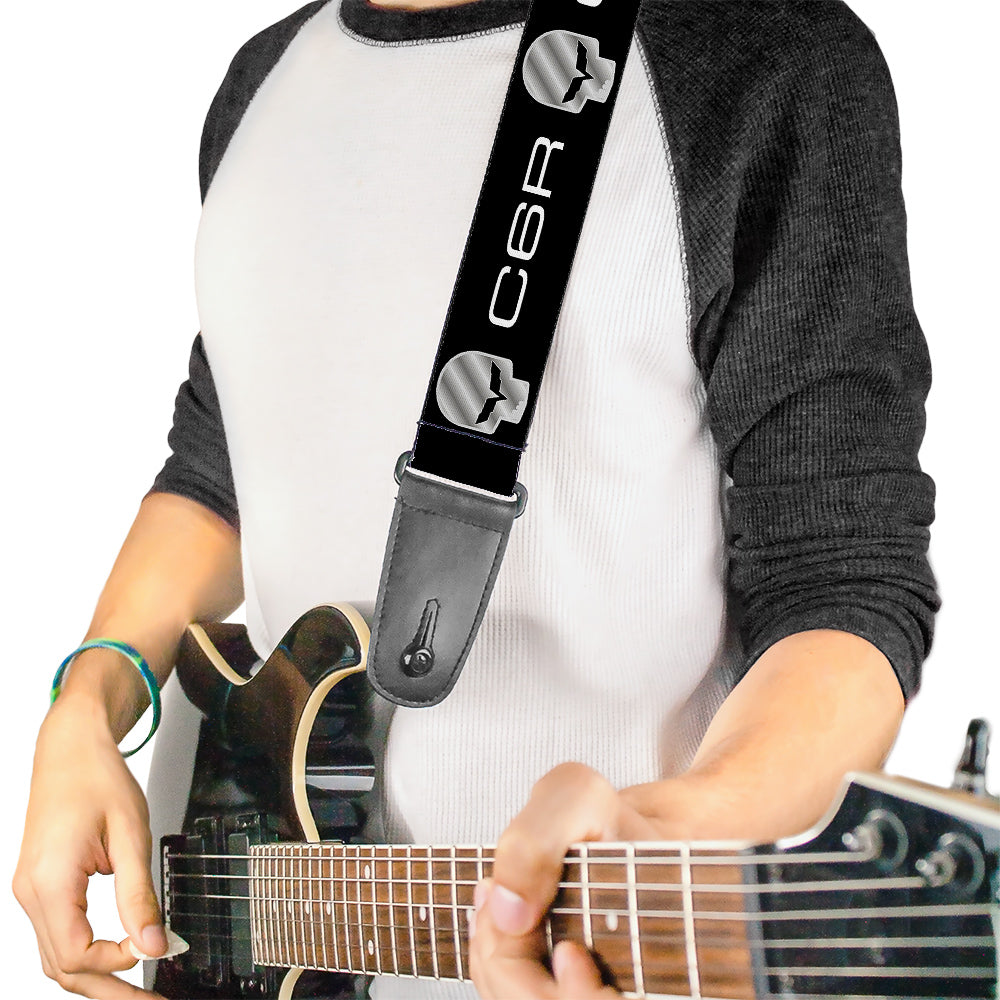 C6R Corvette Racing Skull Logo Black & Silver Guitar Strap