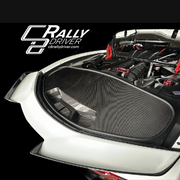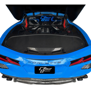 The Carbon Fiber Trunk Cover can remain on the trunk with the rear hatch closed! This cover will also prevent overspray from staining or soaking your carpet if you wash your engine bay, but it will not replace the water proof sealed barrier of the original Corvette C8 Trunk Cover we designed in 2021. The Carbon Fiber Trunk Cover will take your engine bay displays to the next level!