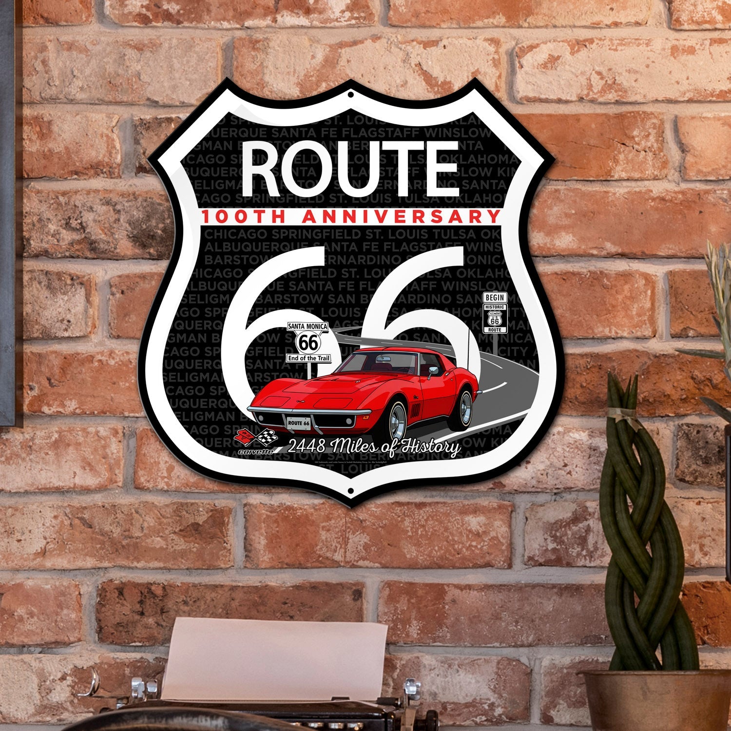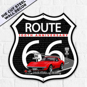 C3 Corvette Route 66 100th Anniversary Die-Cut Shield – Red Convertible Edition-Available in 2 Sizes