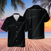 This Men's Short Sleeve Button-Up Corvette Black Carbon Faded Stripes Hawaiian Style Shirt blends sleek design with classic Corvette appeal. Featuring a deep black base accented by subtle carbon-inspired faded diagonal stripes, this shirt has a modern, sporty look that stands out without being loud. The front showcases the iconic C6 Corvette script logo, while the back yoke highlights the lineup of Corvette logos, celebrating the brand’s history. Designed with a relaxed, boxy fit, notch lapel collar, and button-up front, it’s perfect for casual outings, car shows, or bowling nights where you want to show off your Corvette pride.
