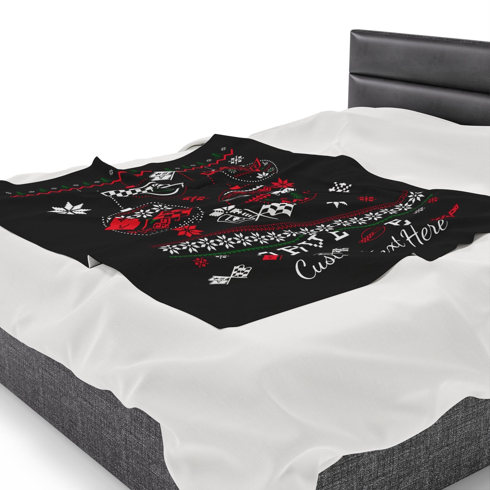 Corvette Ugly Sweater Christmas Personalized Velveteen Plush Blanket - BLACK