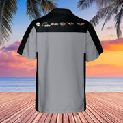 Chevrolet Corvette Hawaiian Shirt Machine Silver Metallic and Black