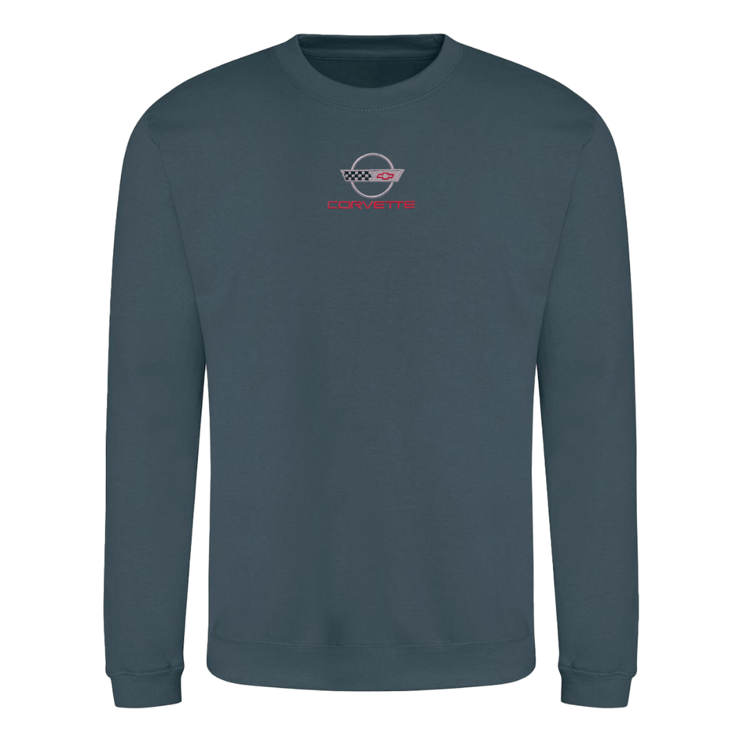 Introducing the brand new C1 - C8 Corvette embroidered crew neck sweatshirt exclusively sold only at CorvetteStoreOnline.com. This sweatshirt is crafted for ultimate comfort and style, perfect for brisk evenings and has a laid-back fit ideal for daily wear. Whether you're cruising down the highway or attending a car show, this hoodie is sure to turn heads and spark conversations among fellow Corvette enthusiasts.