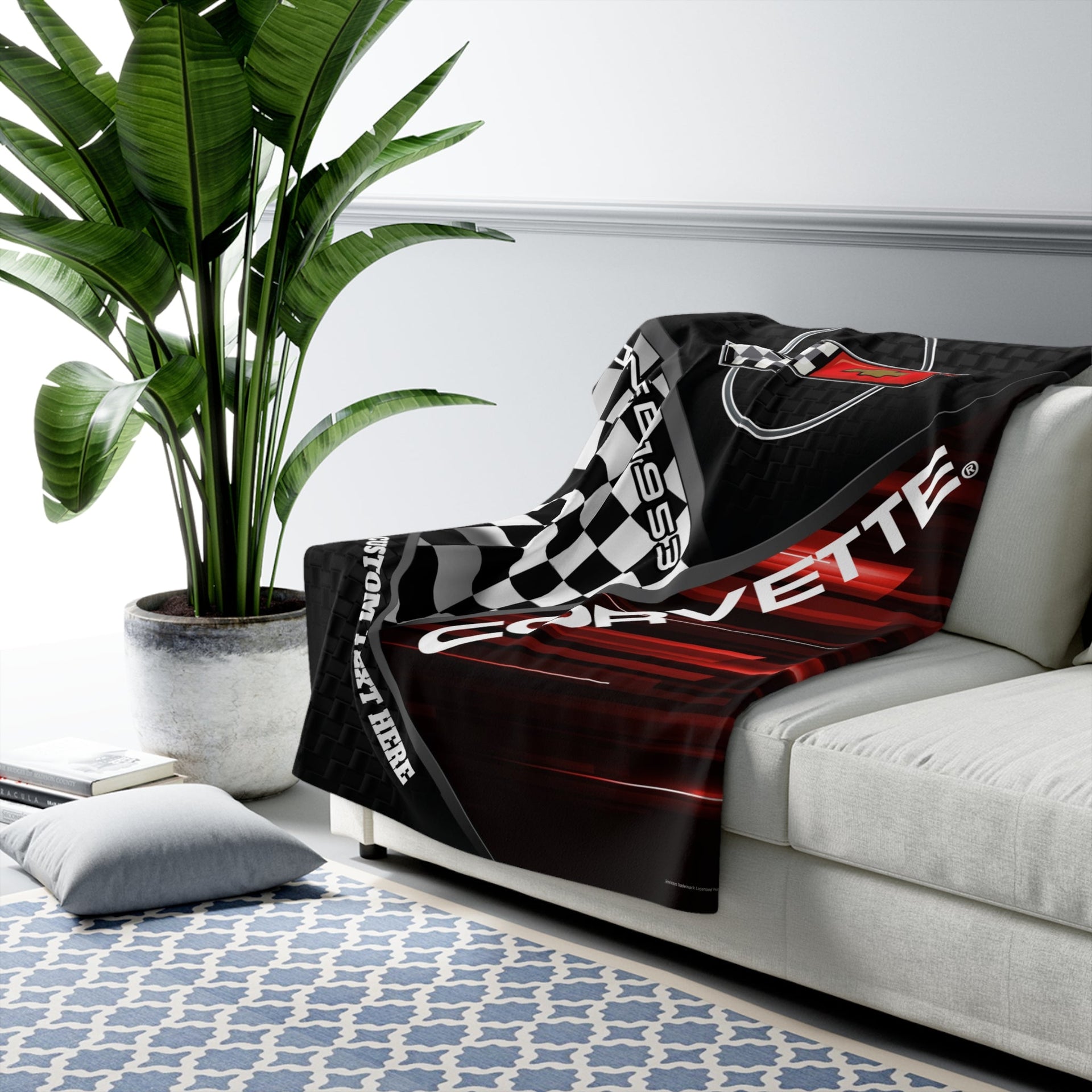 Personalized C4 Corvette Checkered Flag Racing Decorative Sherpa Blanket