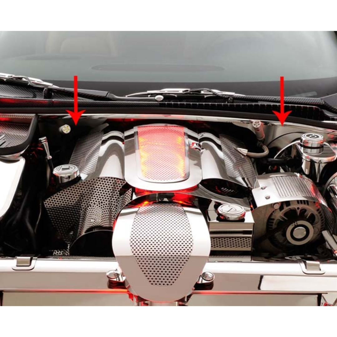 Dress up your Corvette with our Brushed Stainless Steel Firewall Covers. These trim pieces are designed to fit all 1997-2004 C5 Corvettes on the firewall and add a clean stylish look to your Corvette engine bay.