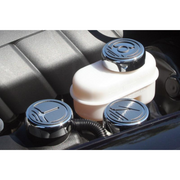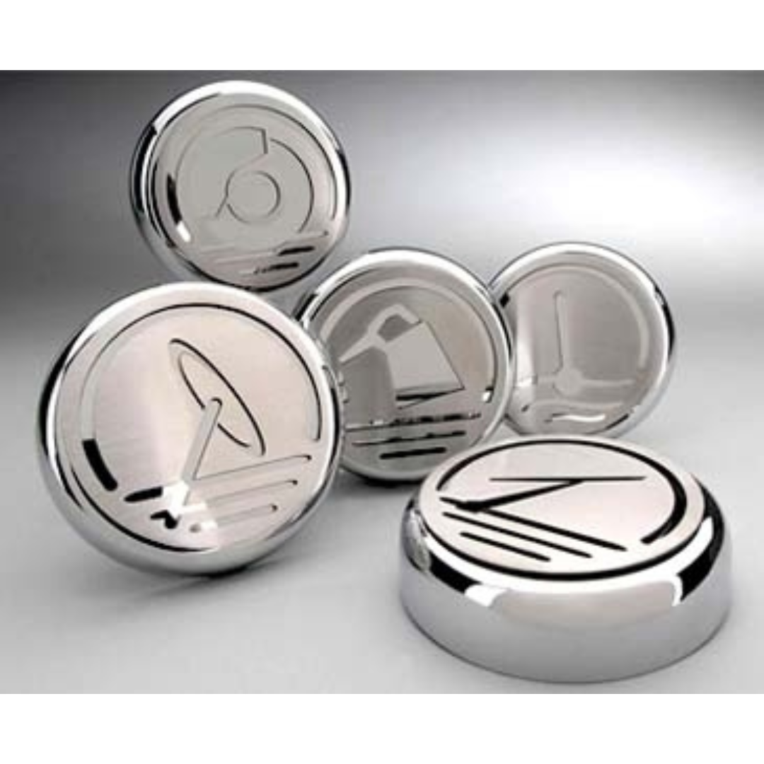 This 5pc triple chrome plated and stainless cap cover set is designed to cover your factory oil, brake fluid, water tank, windshield washer, and power steering fluid caps. Installs in seconds with velcro attachment cookies for a fraction of what it costs to replace your factory caps!