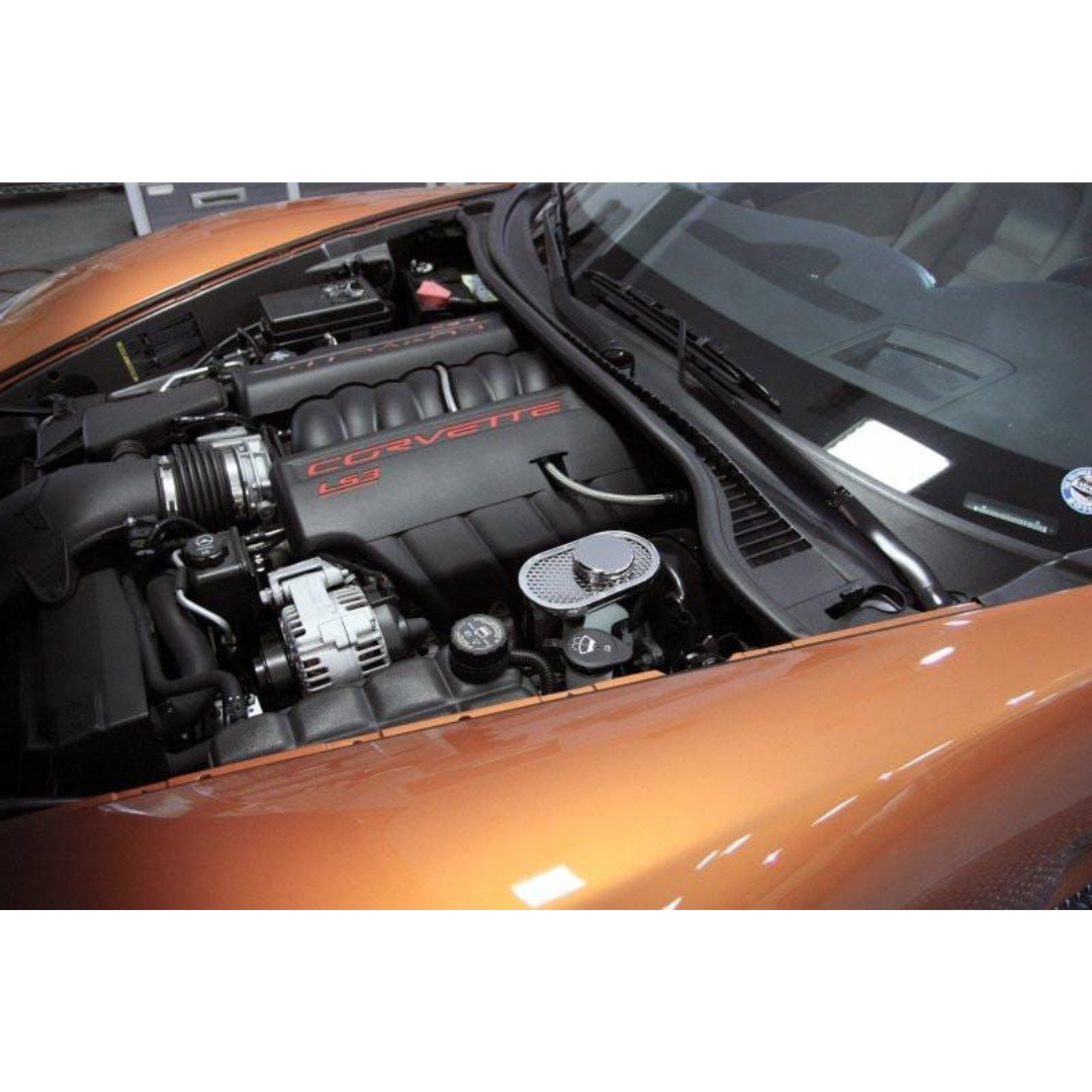 Dress up your Corvette with our Polished Stainless Steel Perforated Brake Master Cylinder Cover. plain polished triple chrome-plated cap cover is included with this kit. These trim pieces are designed to fit all 2009-2013 C6, Z06 and Grand Sport Corvettes over the brake master cylinder and add a clean stylish look to your Corvette engine bay.