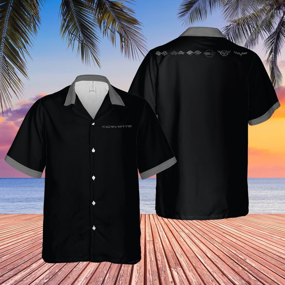 Chevrolet Corvette Hawaiian Shirt Black and Grey Carbon
