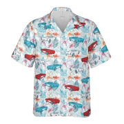 This Corvette Men's Red White & Blue Hawaiian Shirt screams summer.
