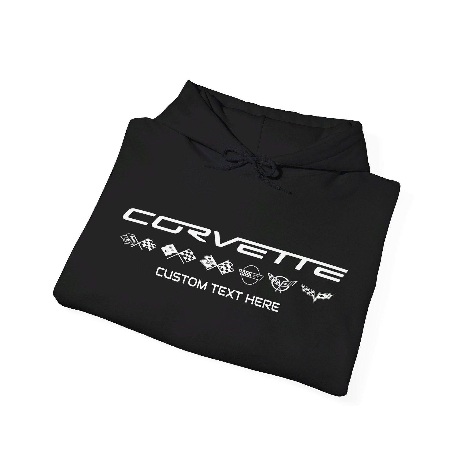 Corvette Generations on One Hoodie: Showcase your love for every Corvette generation with this C1-C6 Flags Fleece Hoodie, featuring flags for all six models on a single garment.