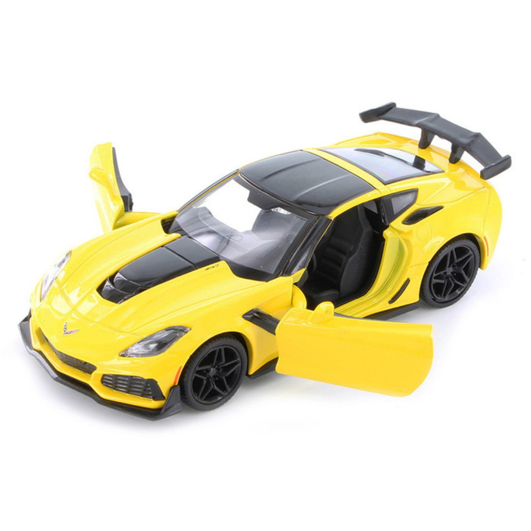 - Brand new 1/24 scale diecast car model of 2019 Chevrolet Corvette ZR1 Yellow with Black Accents die cast model car by Motormax.